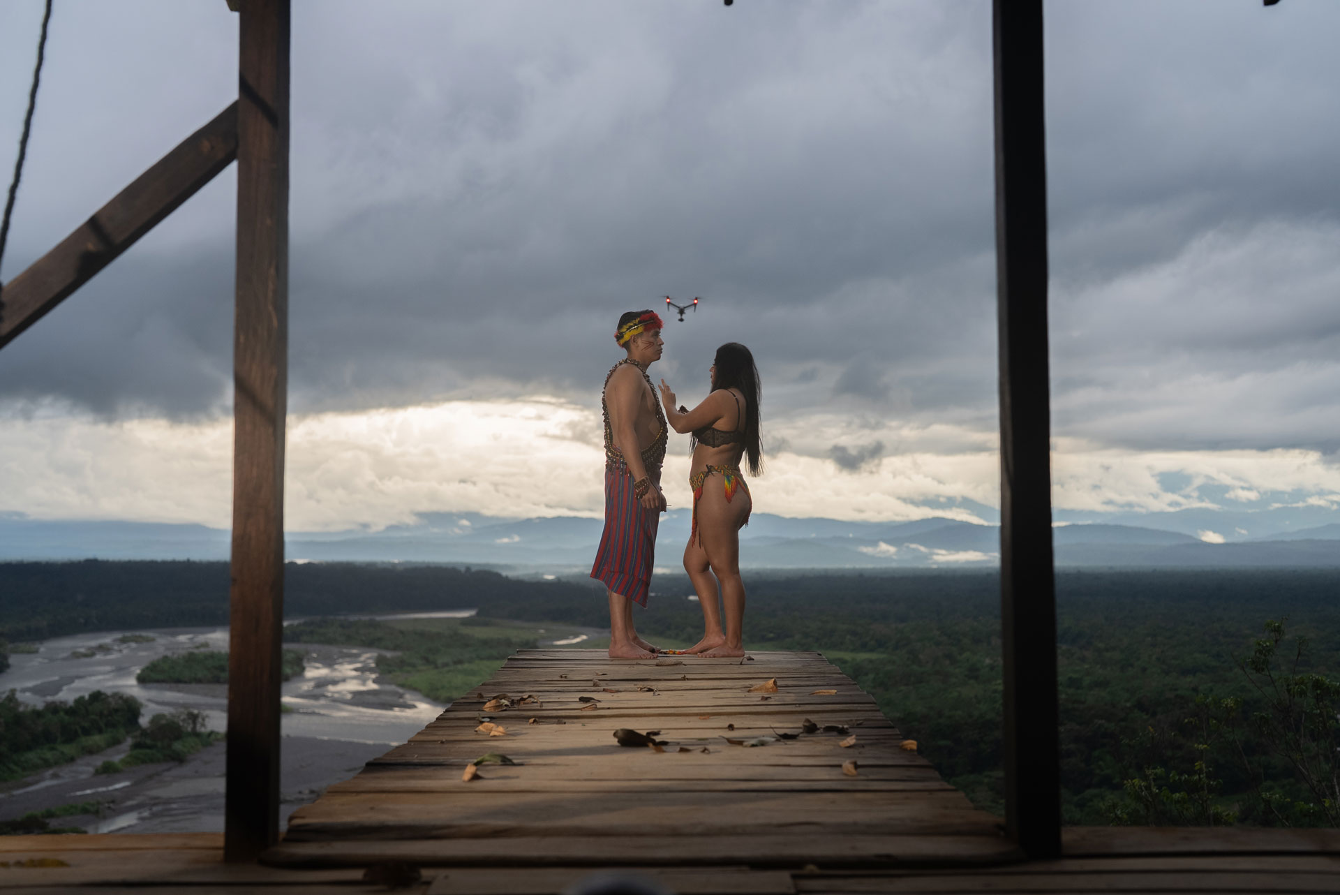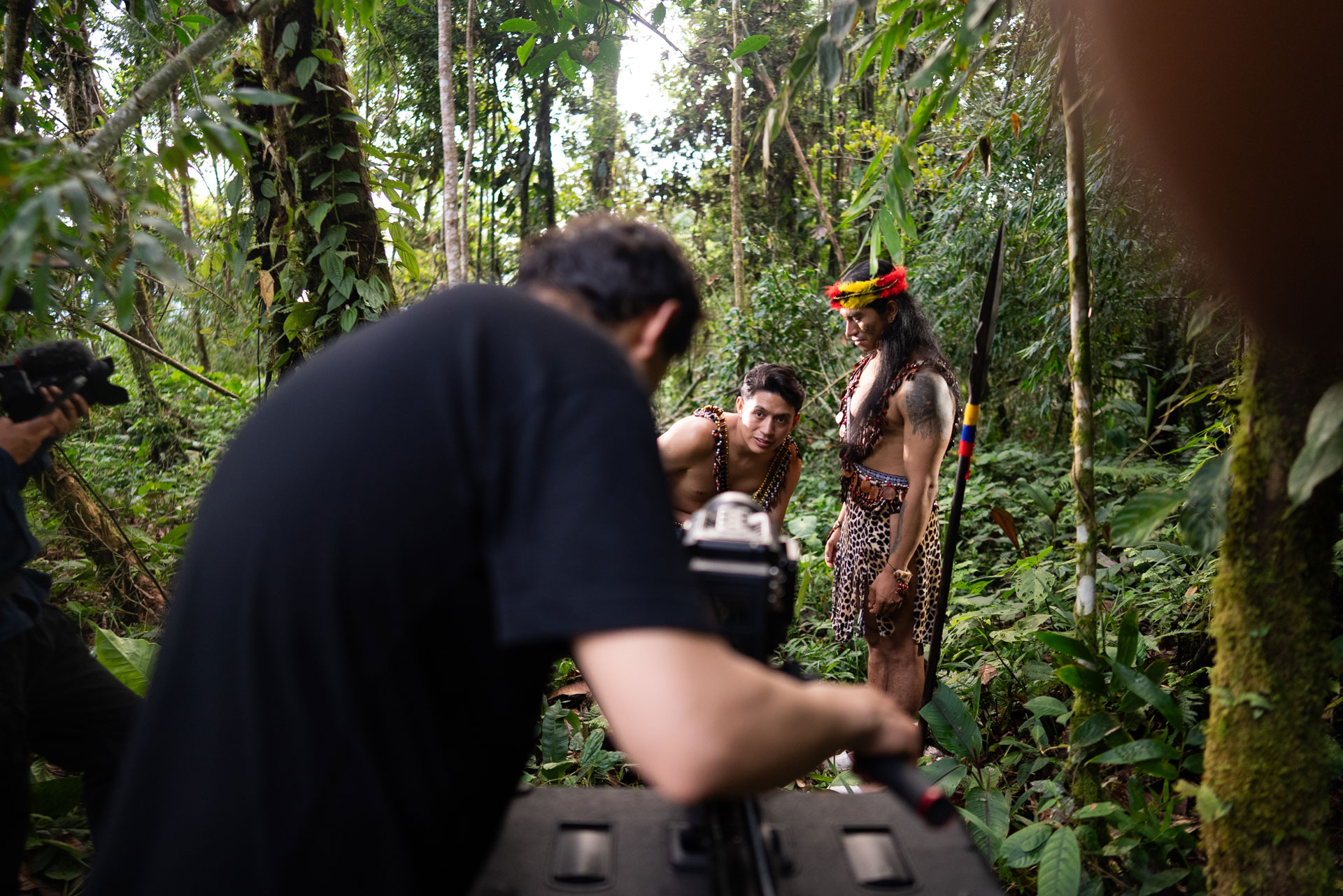 El rodaje se llevó a cabo en el corazón del Puyo, Ecuador, un lugar donde la selva late con fuerza y cada instante está cargado de vida. Grabar en este entorno fue un reto: lluvias intensas, cambios repentinos de luz, humedad constante y el reto logístico de trasladar al equipo técnico y los equipos de filmación por ríos y senderos.