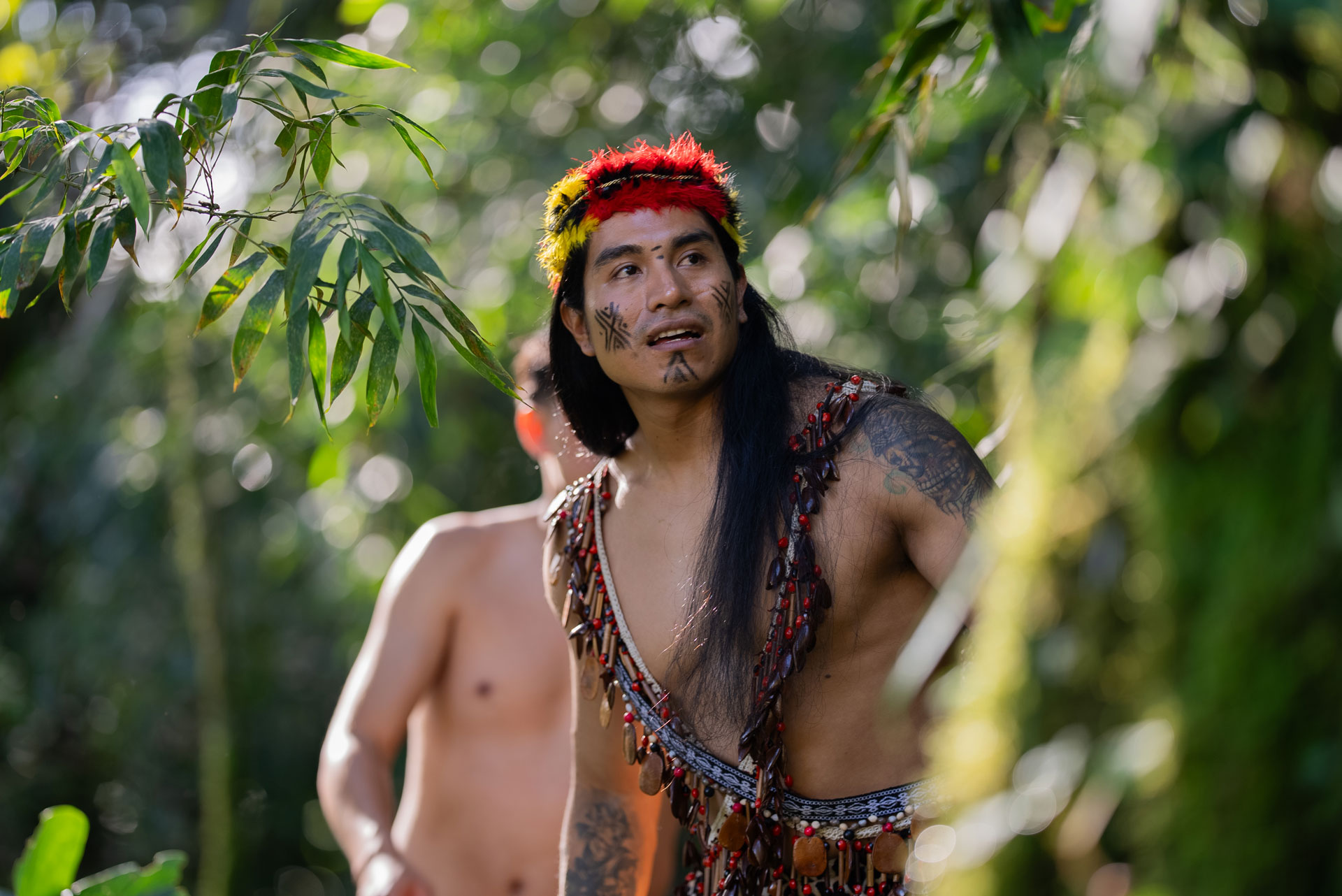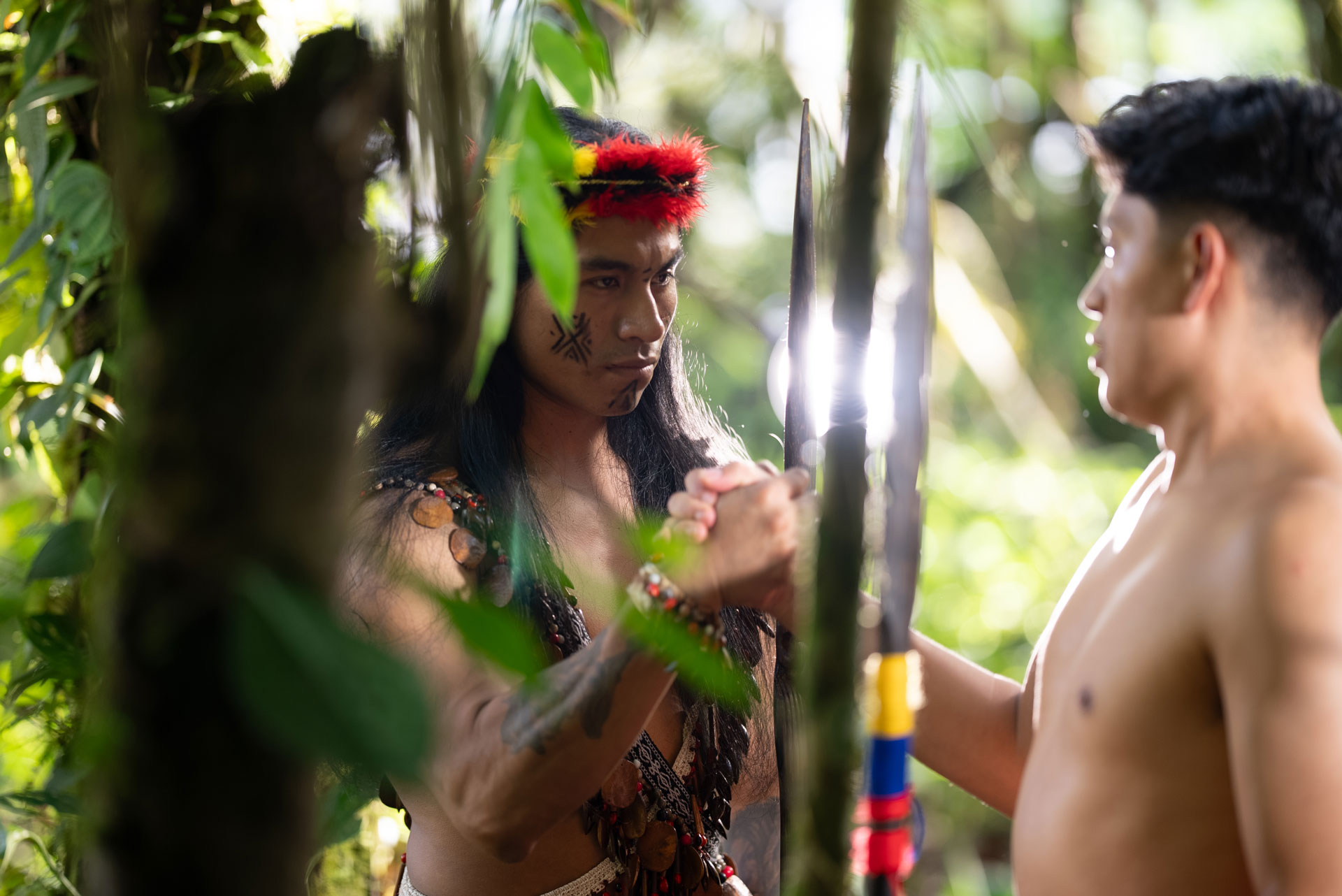 Contamos con la guía de un mentor Shuar, un cazador experimentado, quien instruyó a John en las labores diarias de la comunidad: trabajar la tierra, aprender a usar la lanza y respetar a la naturaleza. Mientras tanto, Nataly observaba y ponía a prueba la sinceridad de sus actos.